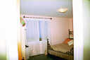 The "2nd floor" (or 3rd...) has the bedrooms and the bathroom. There are two smaller bedrooms in back which will become the computer room and the library. The front bedroom is the main bedroom, and has been given carpeting (the rest of the house has hardwood floors) and a tile ceiling by the current owner.